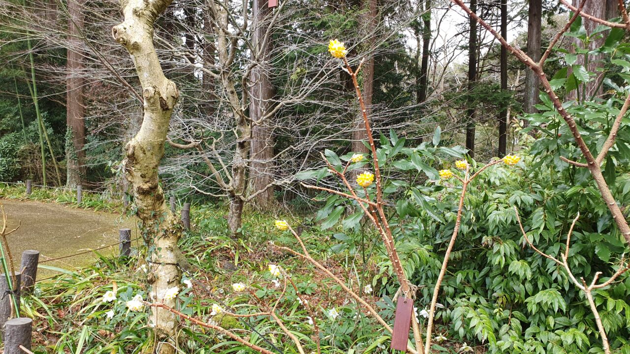 ヒイラギナンテン(林の小道・母屋・憩いの庭・もみじ園付近)