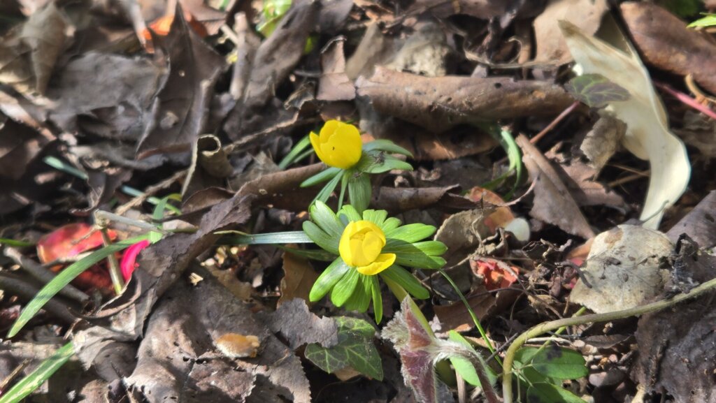 先週のまとまった雪によって植物たちは潤い、アカバナマンサクは一気に見頃を迎え、一週間前は芽の姿も見えなかった場所でもセツブンソウが開花を始めました。