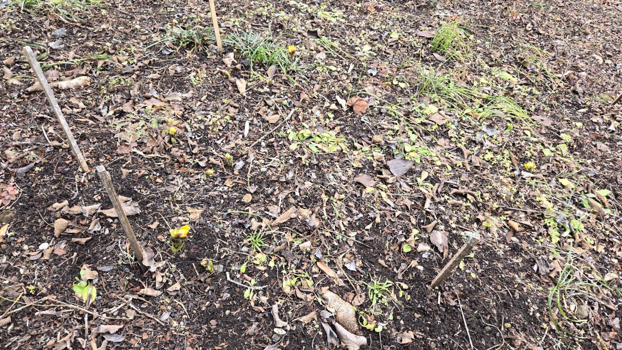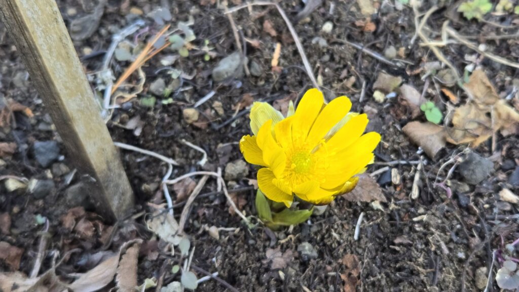 ウメやロウバイの雪前に開花していた花は雪焼けしてしまいましたが、こちらも雪解けと土日の温かさで開花が進んできております。