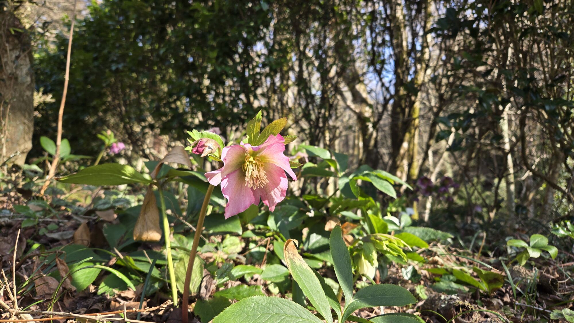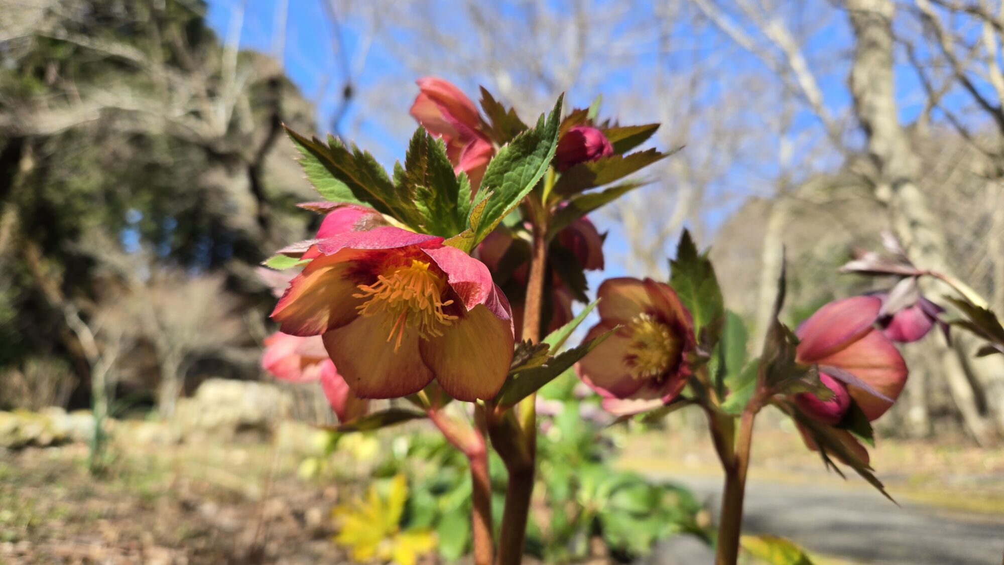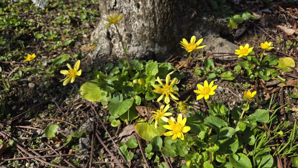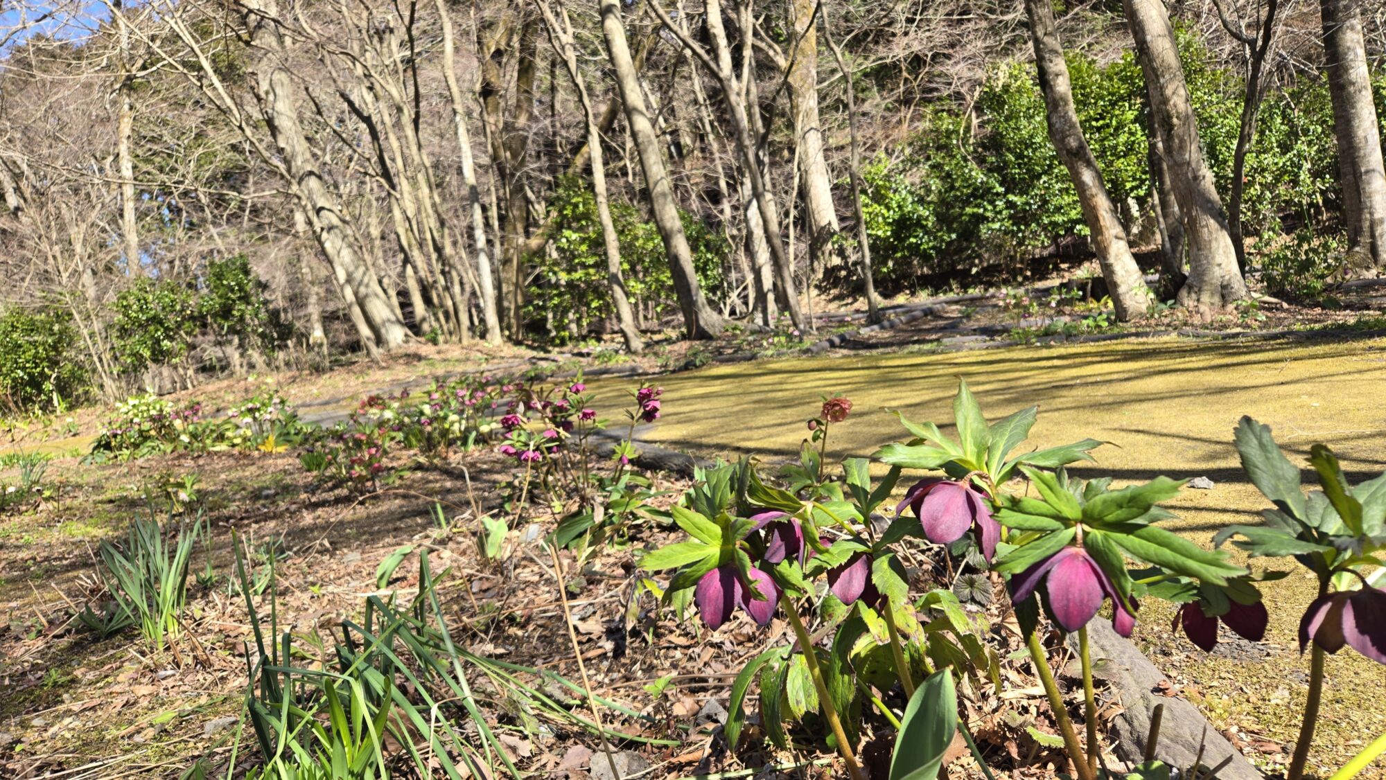 クリスマスローズやリュウキンカなどがあちらこちらで見頃を迎えております。