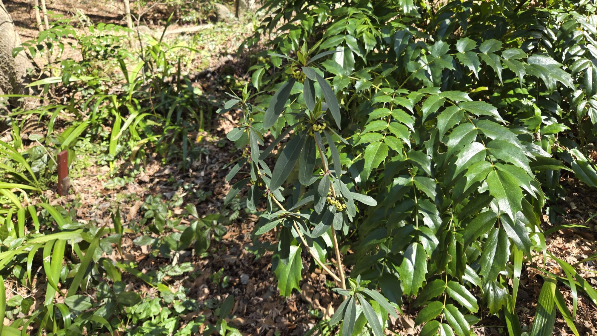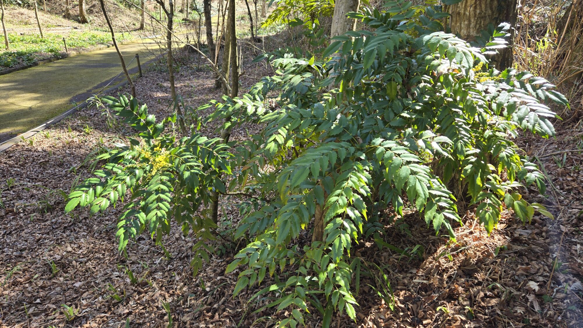 ヒイラギナンテン(節花・林の小道・うぐいす亭・憩いの庭・もみじ園付近)