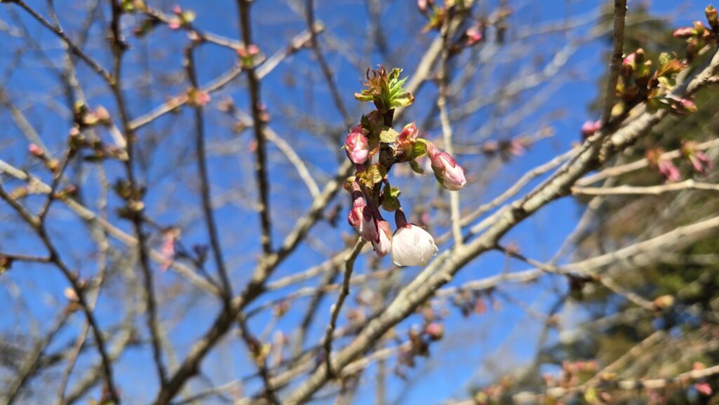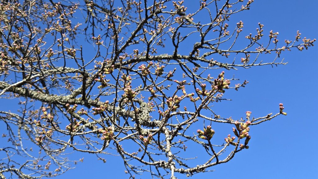 ソメイヨシノやエドヒガンザクラなどもほころびかけている蕾が多く、間もなく開花を迎えそうです。