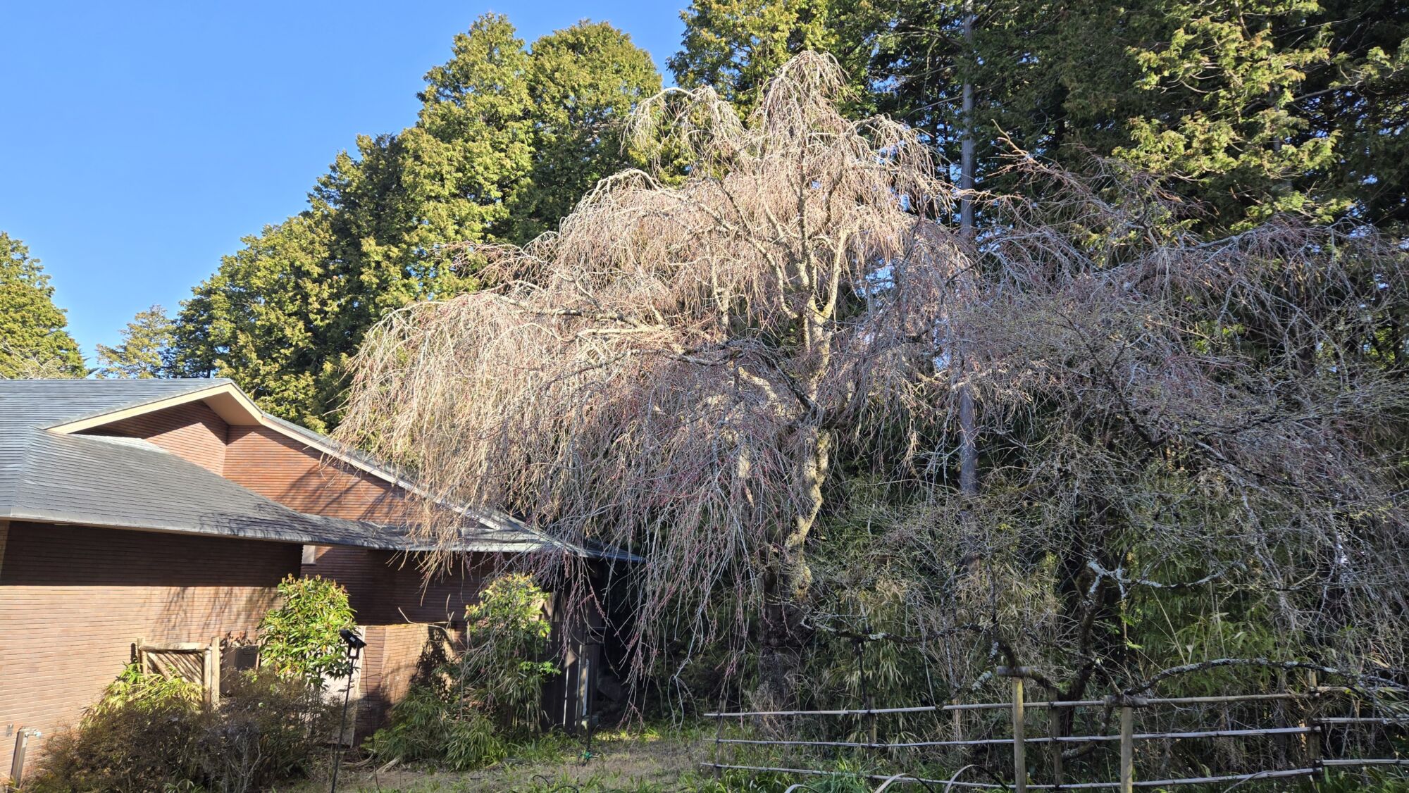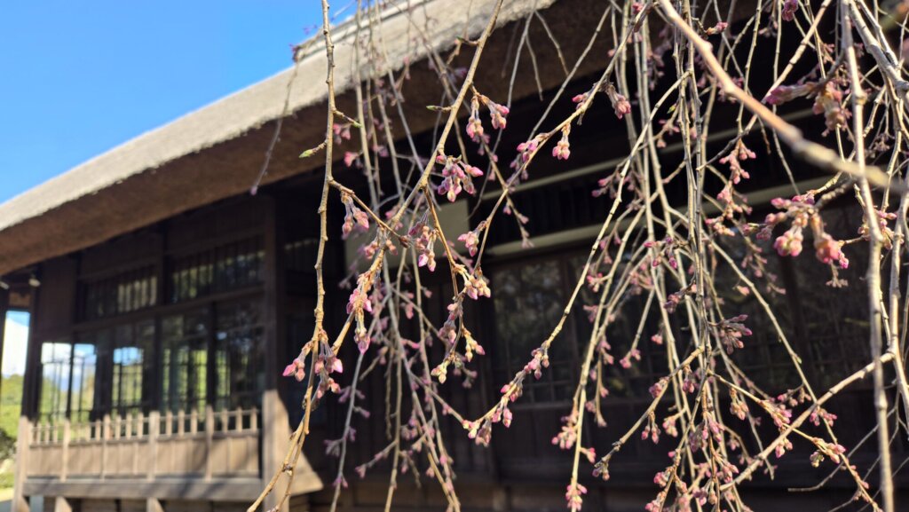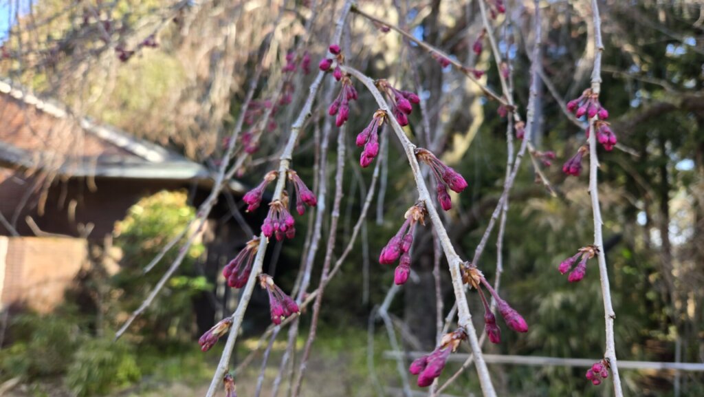 シダレザクラ【蕾膨らむ~一分咲き】(母屋付近)
