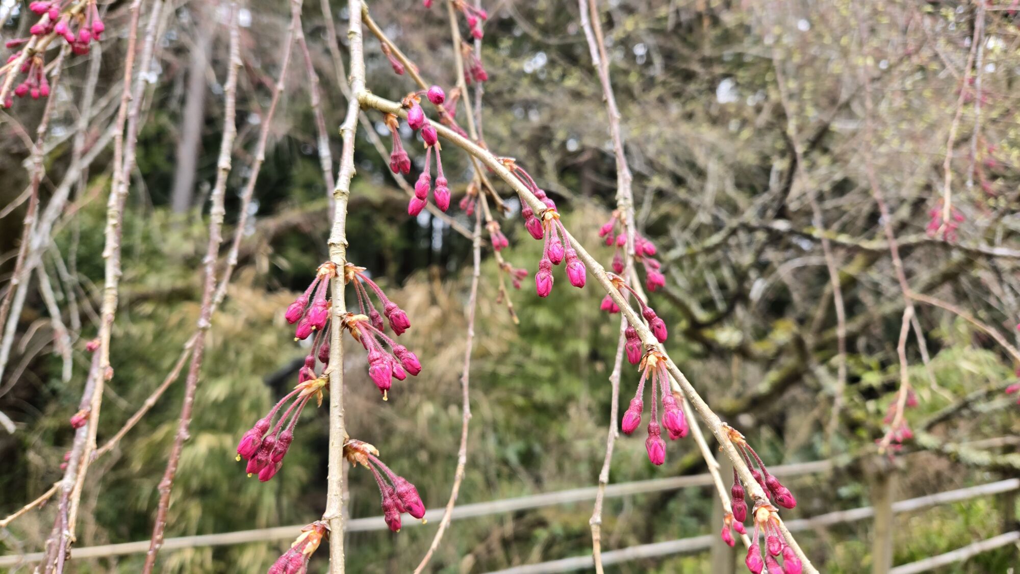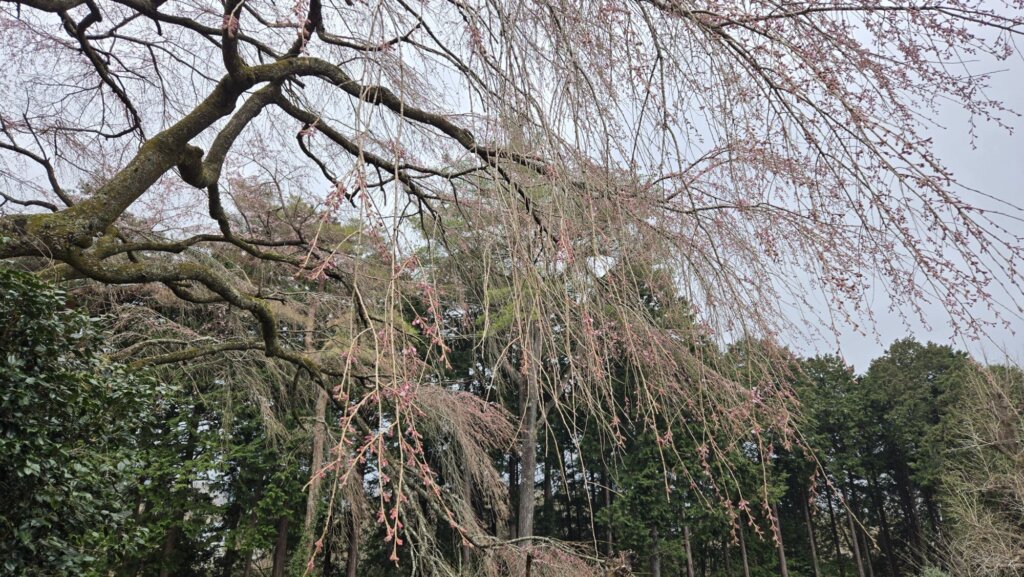 シダレザクラ【蕾膨らむ~一分咲き】(母屋付近)