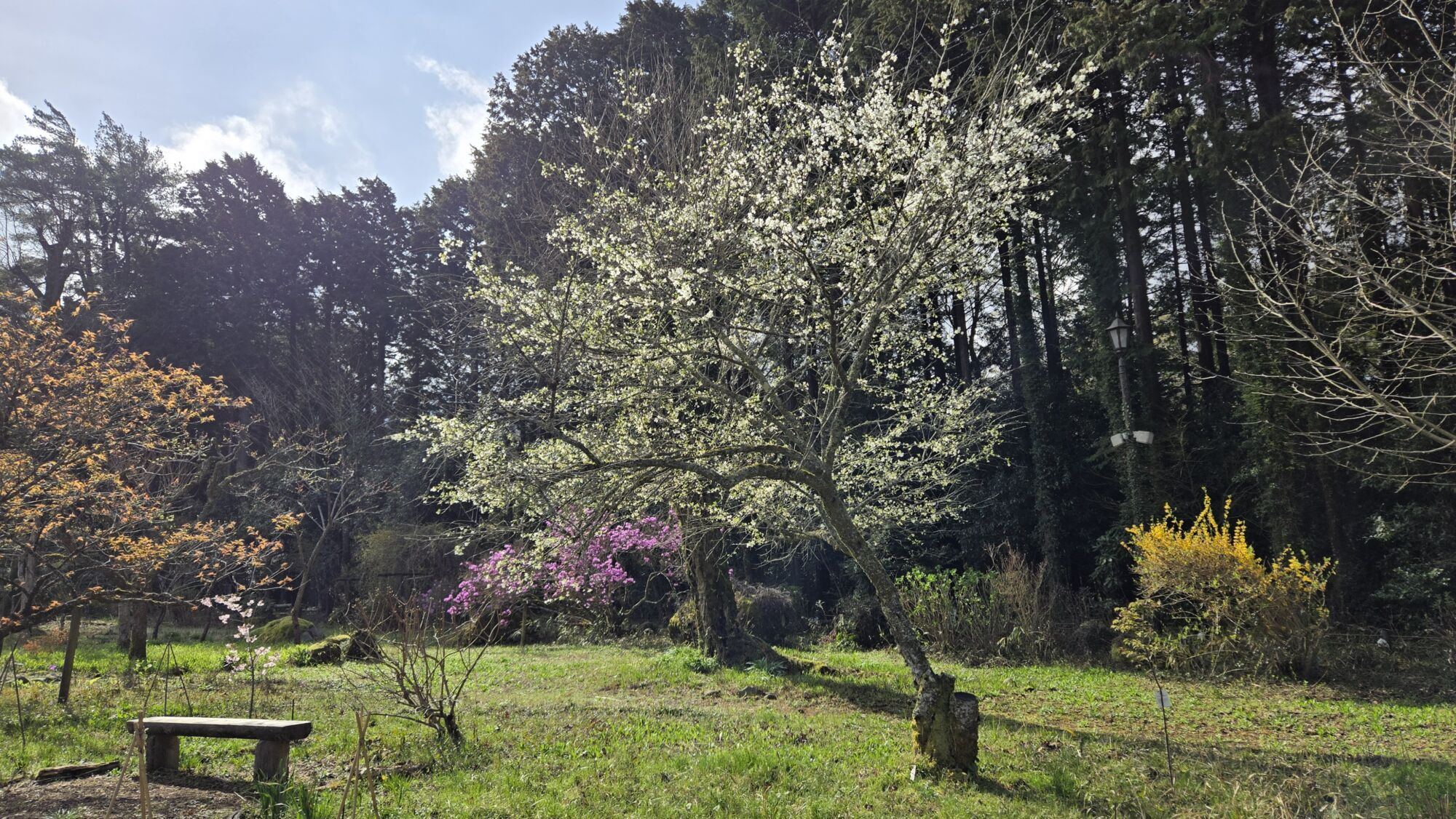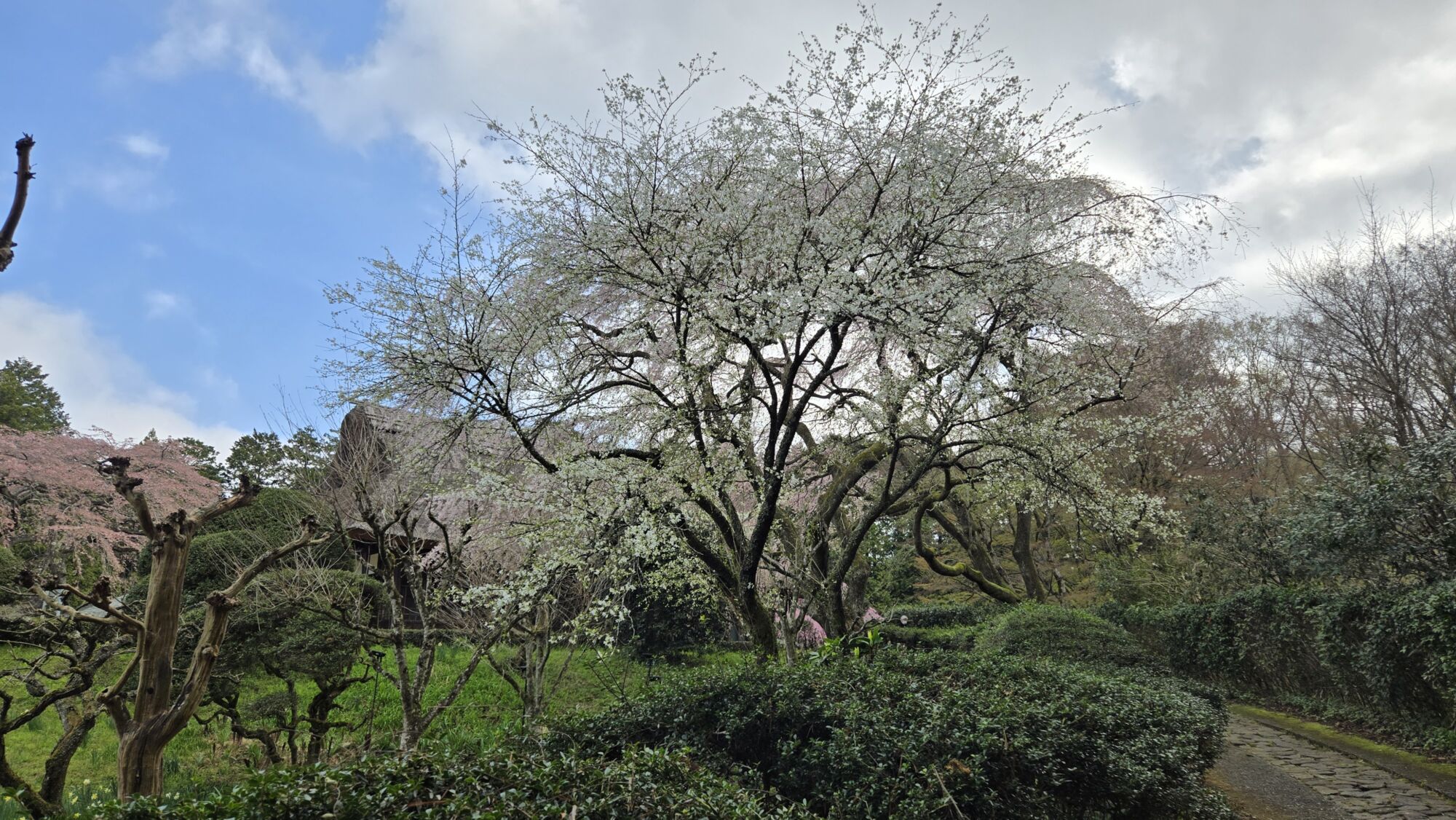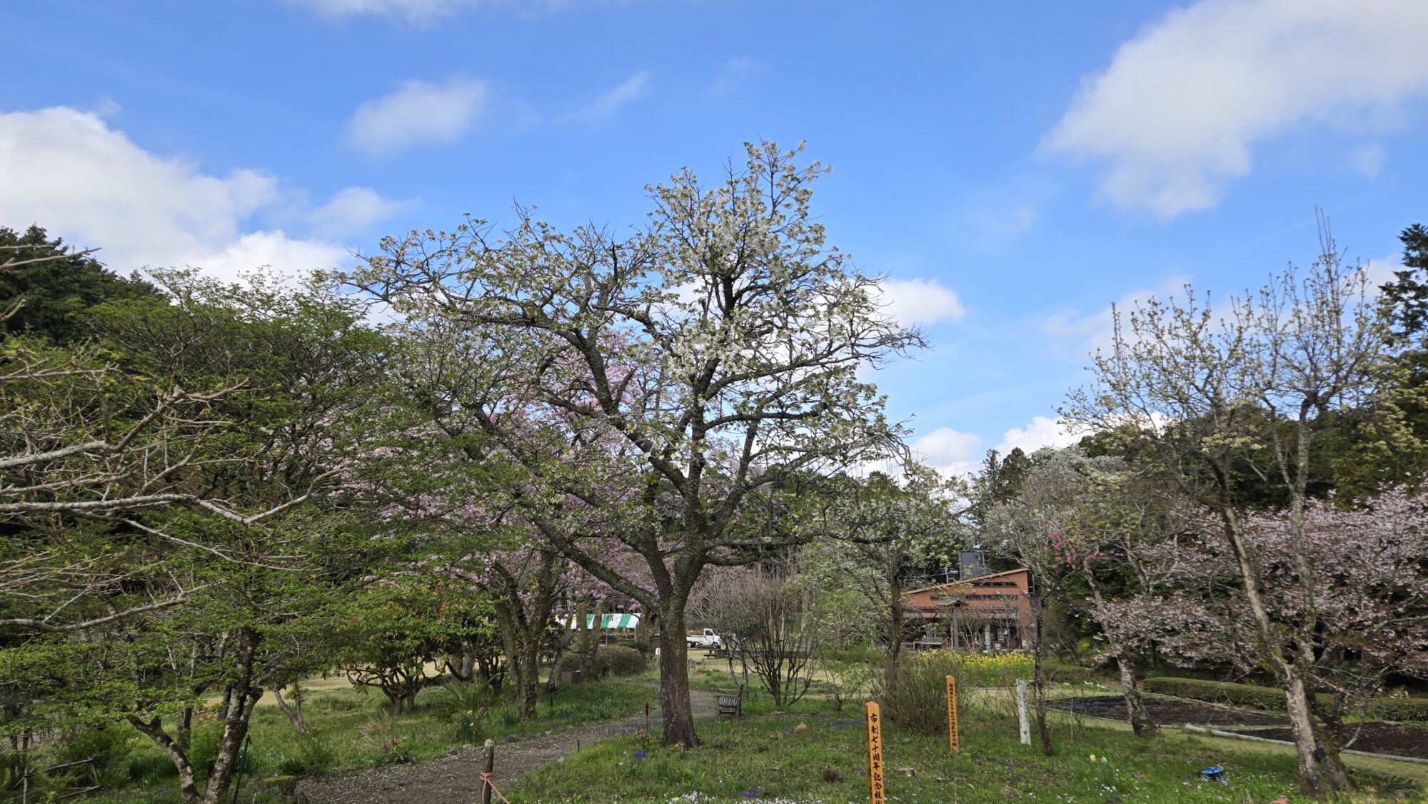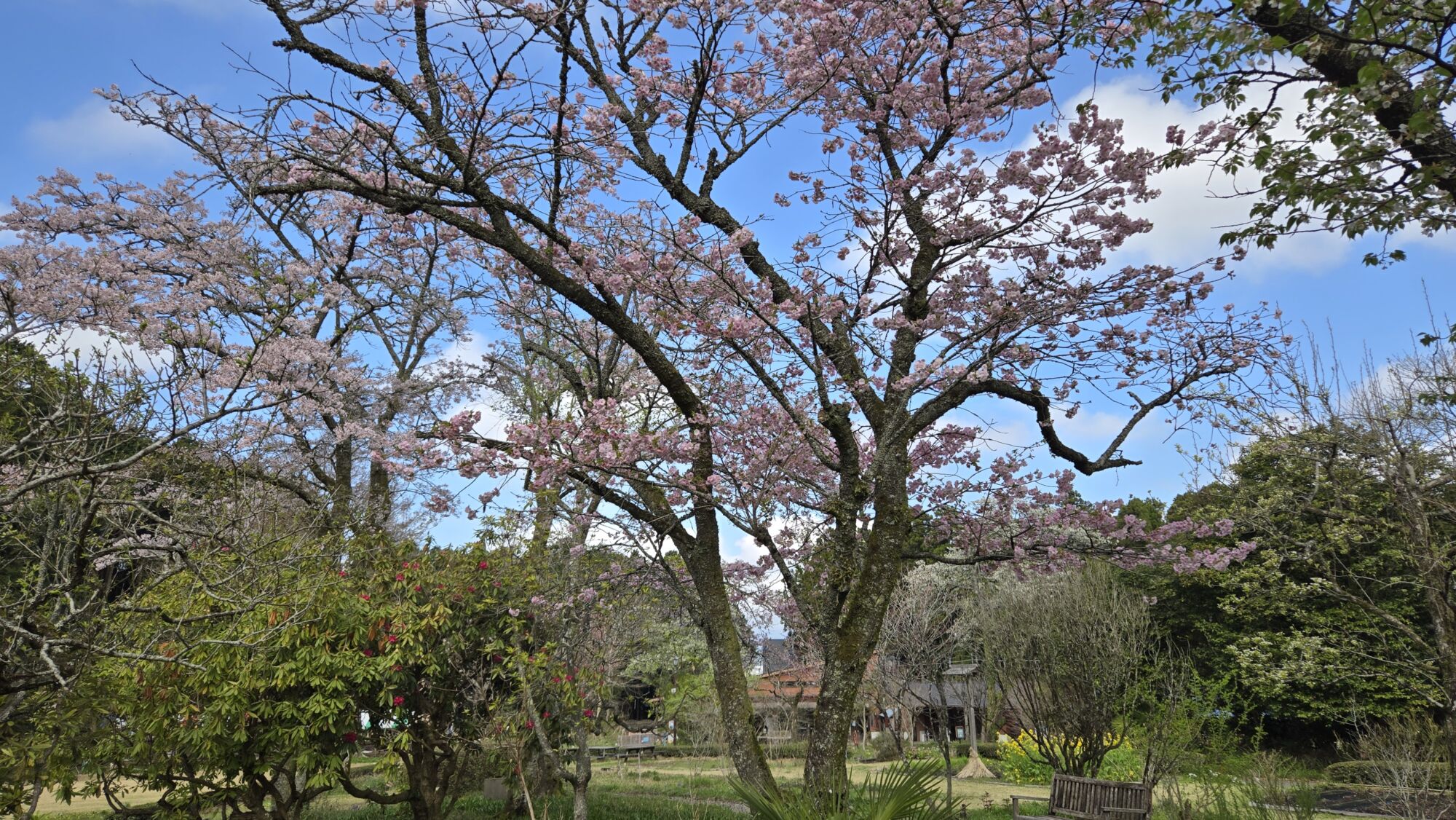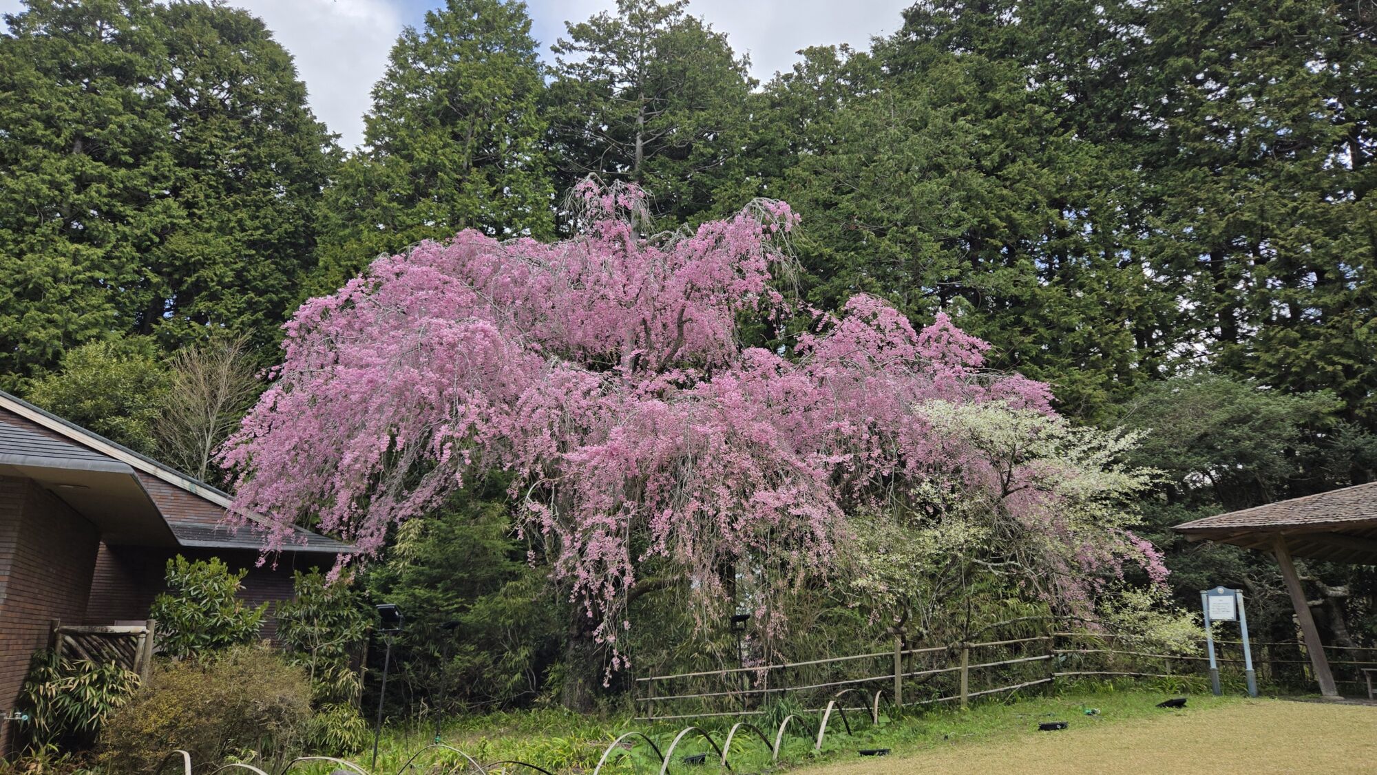4月6日 桜の開花状況 Posted on 2026年4月6日 母屋のまわりのシダレザクラは散り始め~落花盛んを迎え、桜が舞い降りる姿をご覧いただけます。 母屋裏のヤエベニシダレザクラやナデンザクラ、フジザクラなどが見頃を迎えております。 ヤエベニシダレザクラ【満開】(東屋付近) シダレザクラ【散り始め~落花盛ん】(母屋付近) オオシマザクラ【散り始め】(売店休憩所前・三峰窯・宮菜母屋付近) ナデンザクラ【満開】(節花ピラカンサアーチ付近) フジザクラ【散り始め】(宮菜母屋付近) リョクガクザクラ【散り始め~落花盛ん】(節花・記念撮影広場・東屋付近) 秩父宮記念公園